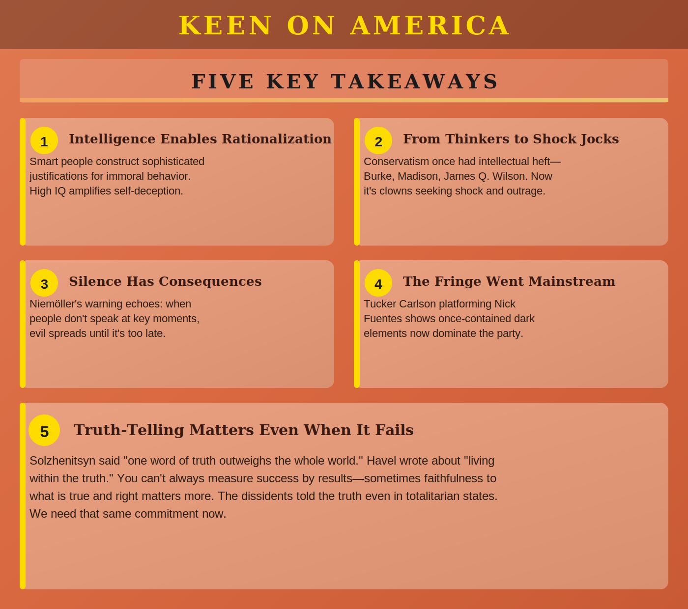 For Peter Wehner, American politics is a tale of two Kellys. On the one hand, there’s the moral resistance of Arizona Senator Mark Kelly to what appears to be the gratuitous violence of American forces overseas. On the other hand, there’s the conservative podcaster Megyn Kelly who has openly fantasized about this bloodthirsty behavior. For Wehner, Megyn Kelly’s immorality is an excellent example of both the moral and intellectual decline of the right. Once a serious journalist who challenged (and upset) Trump in the 2015 debates, Kelly has devolved into what Wehner calls “darkly deranged” territory - a trajectory that mirrors the broader conservative movement’s abandonment of Burkean and Madisonian principles for Kelly-style shock jocks and neo-Nazi clowns like Nick Fuentes.